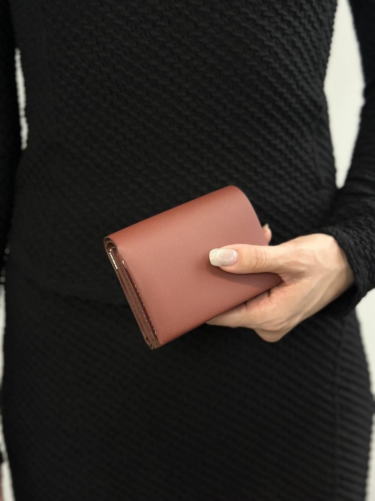 【micro grain】というカウレザーを使用。工業製品のようなソリッドな印象を持ち、見た目では分からない細かなシボによって傷やシワの付きにくい新しいレザーとなります。
