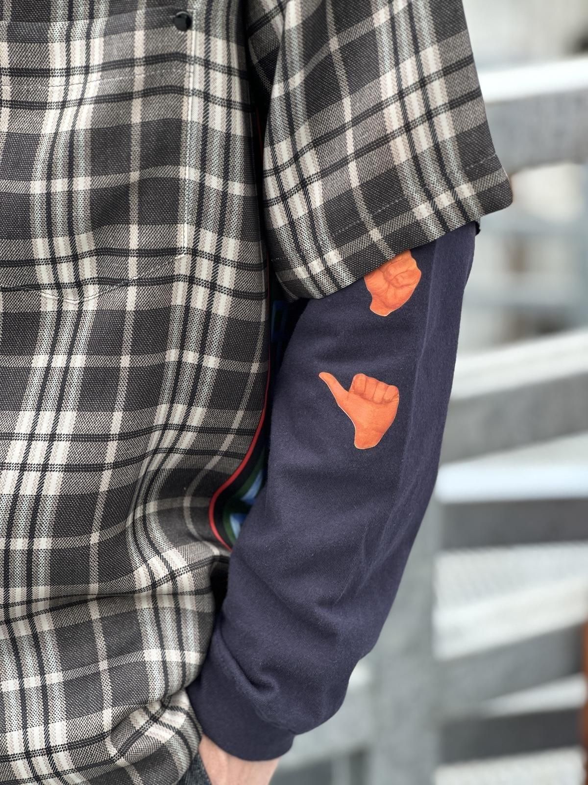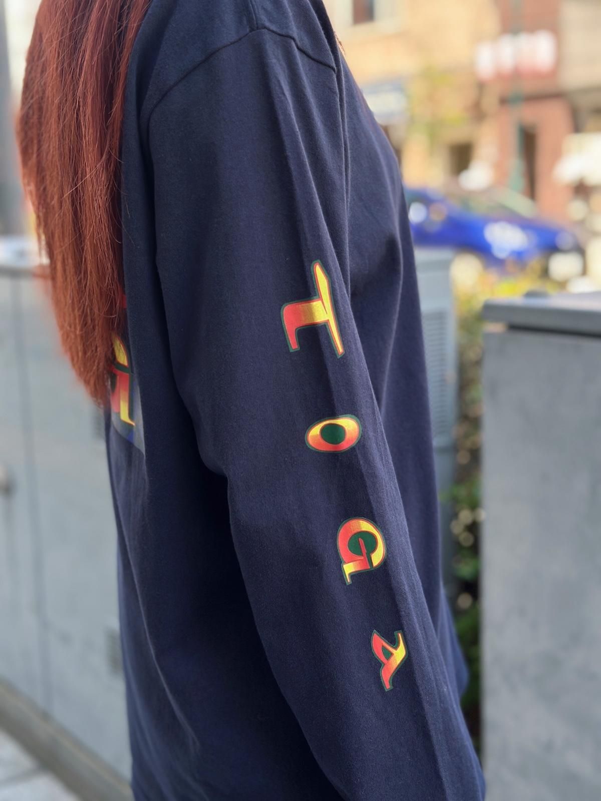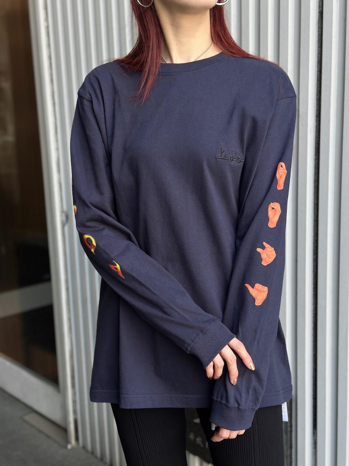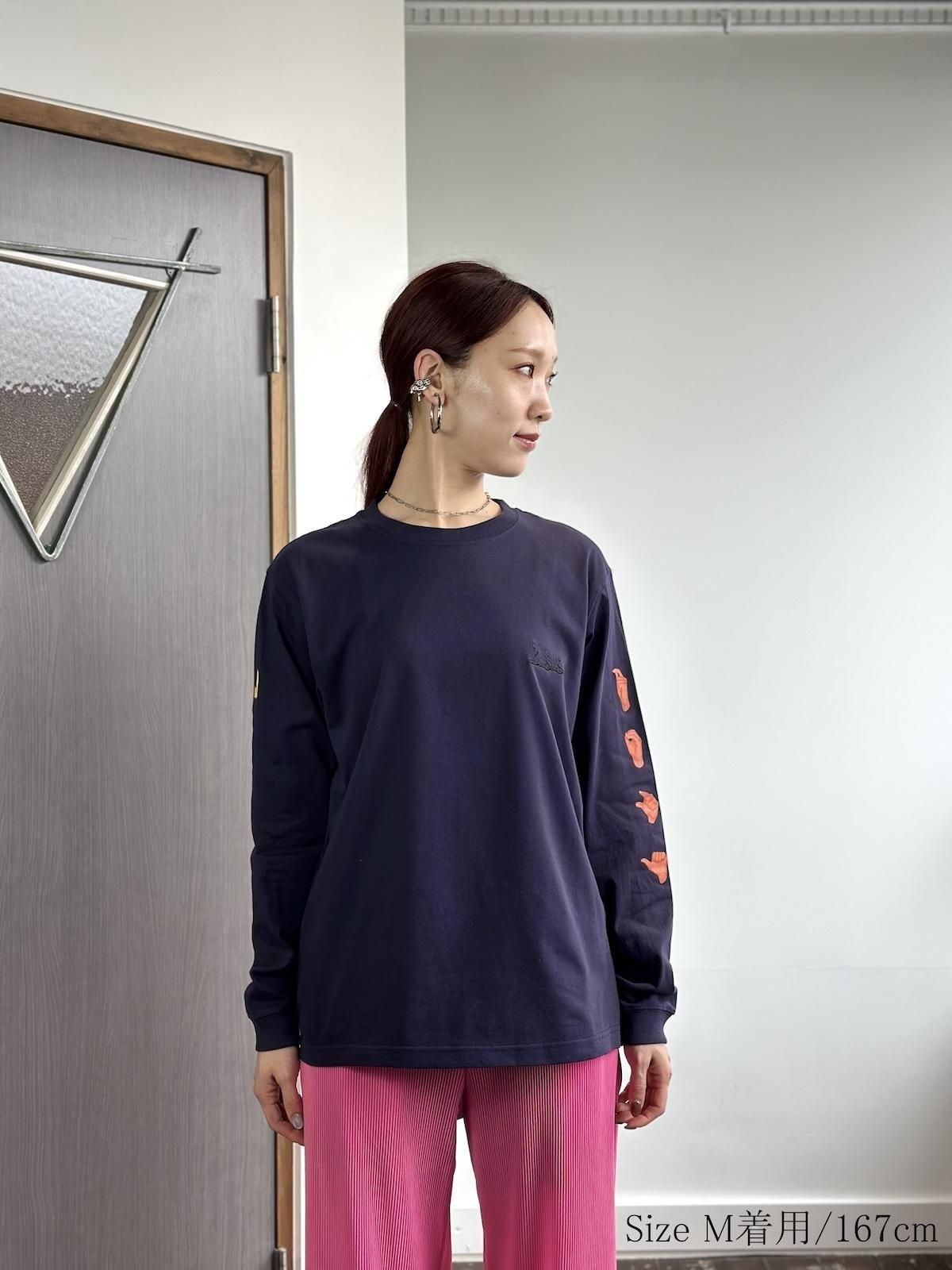 フロントに刺繍、両袖とバックにプリントの入ったロングスリーブTシャツです。