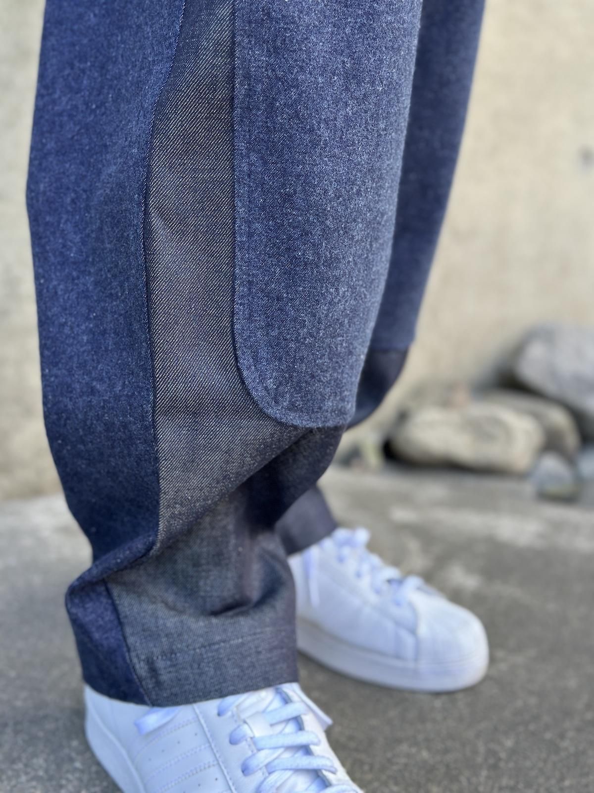 岡山産の起毛を施したデニムとムラ糸デニムの2種類のデニム生地を使用。