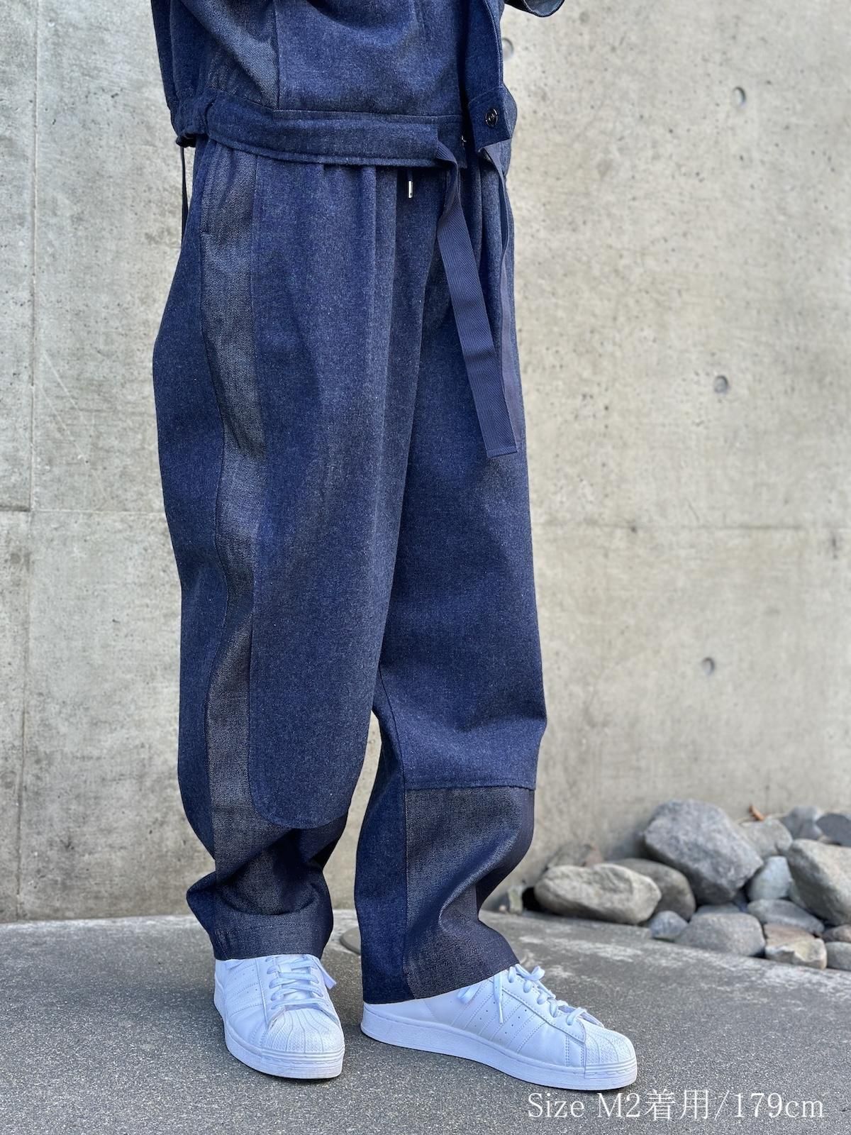 Size M1 ウエスト約37cm~(ゴムと紐で調節可)、股上約35cm、わたり幅約34cm、裾幅約20cm、総丈約102cm