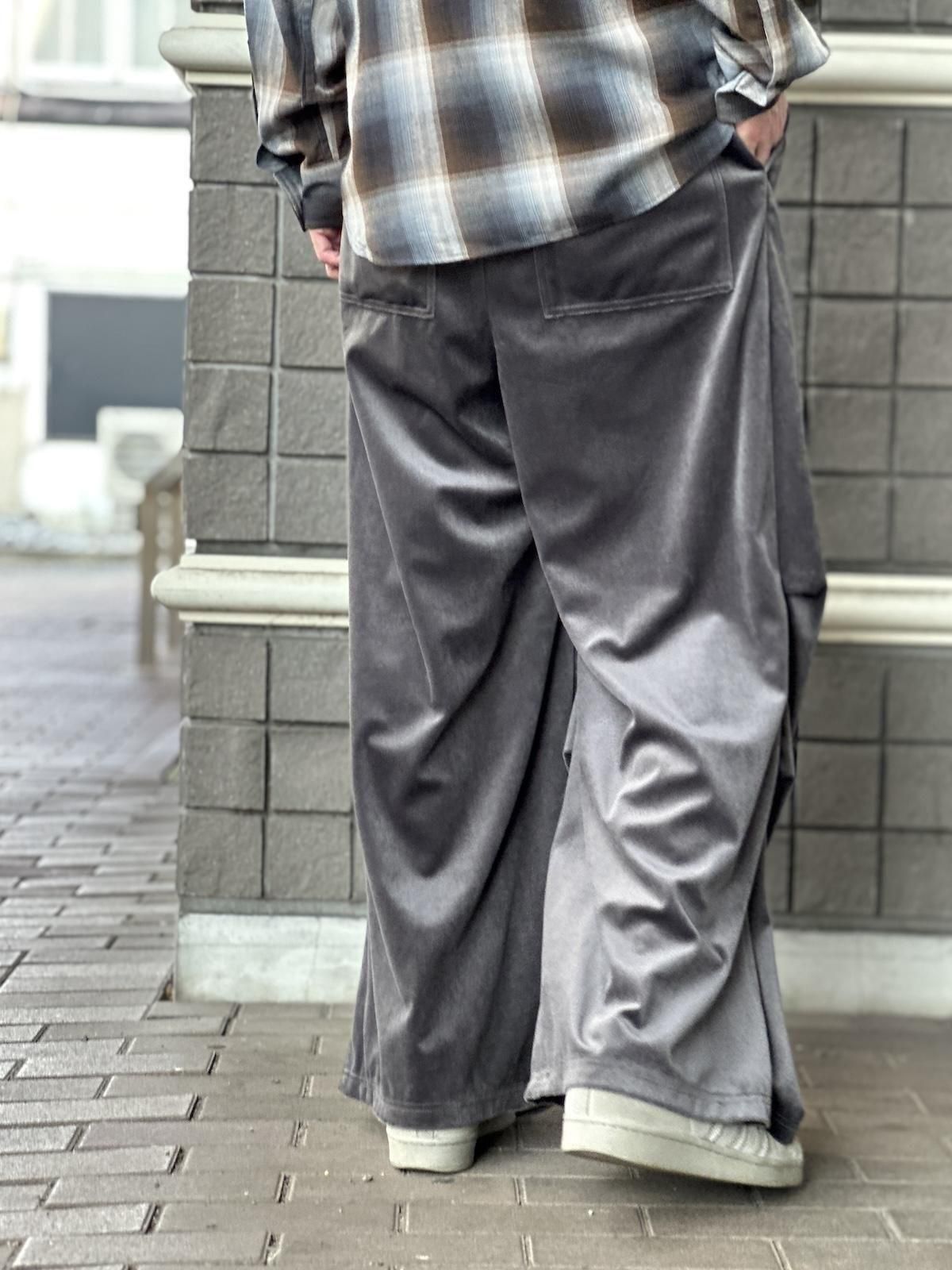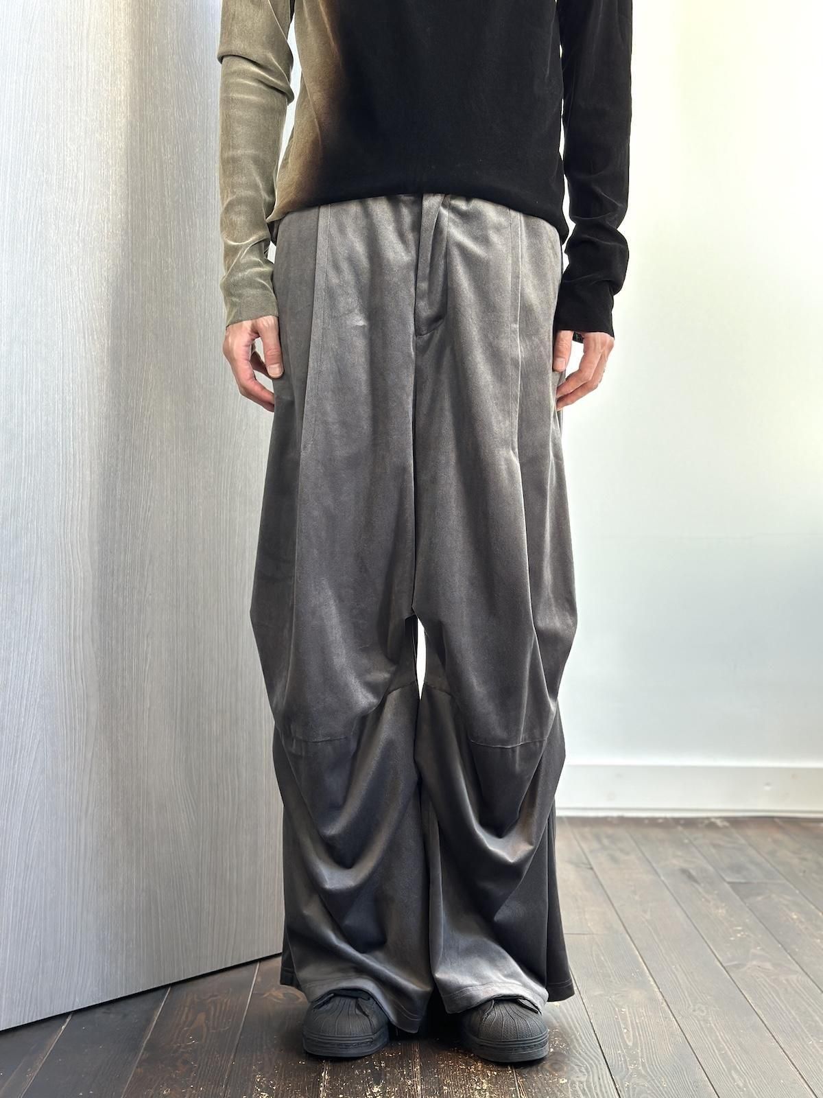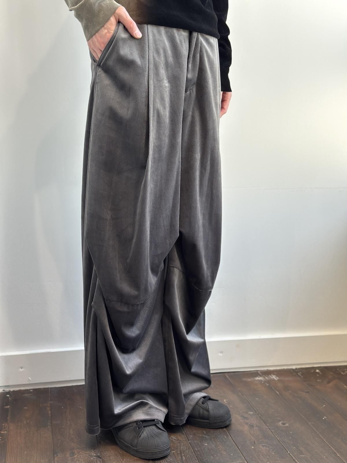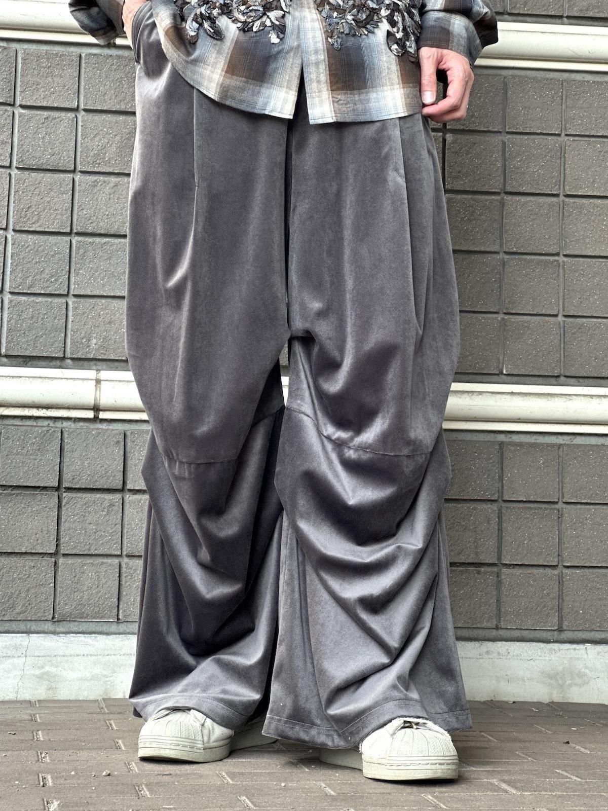 適度な光沢感が上品なベルベット素材のタックパンツです。