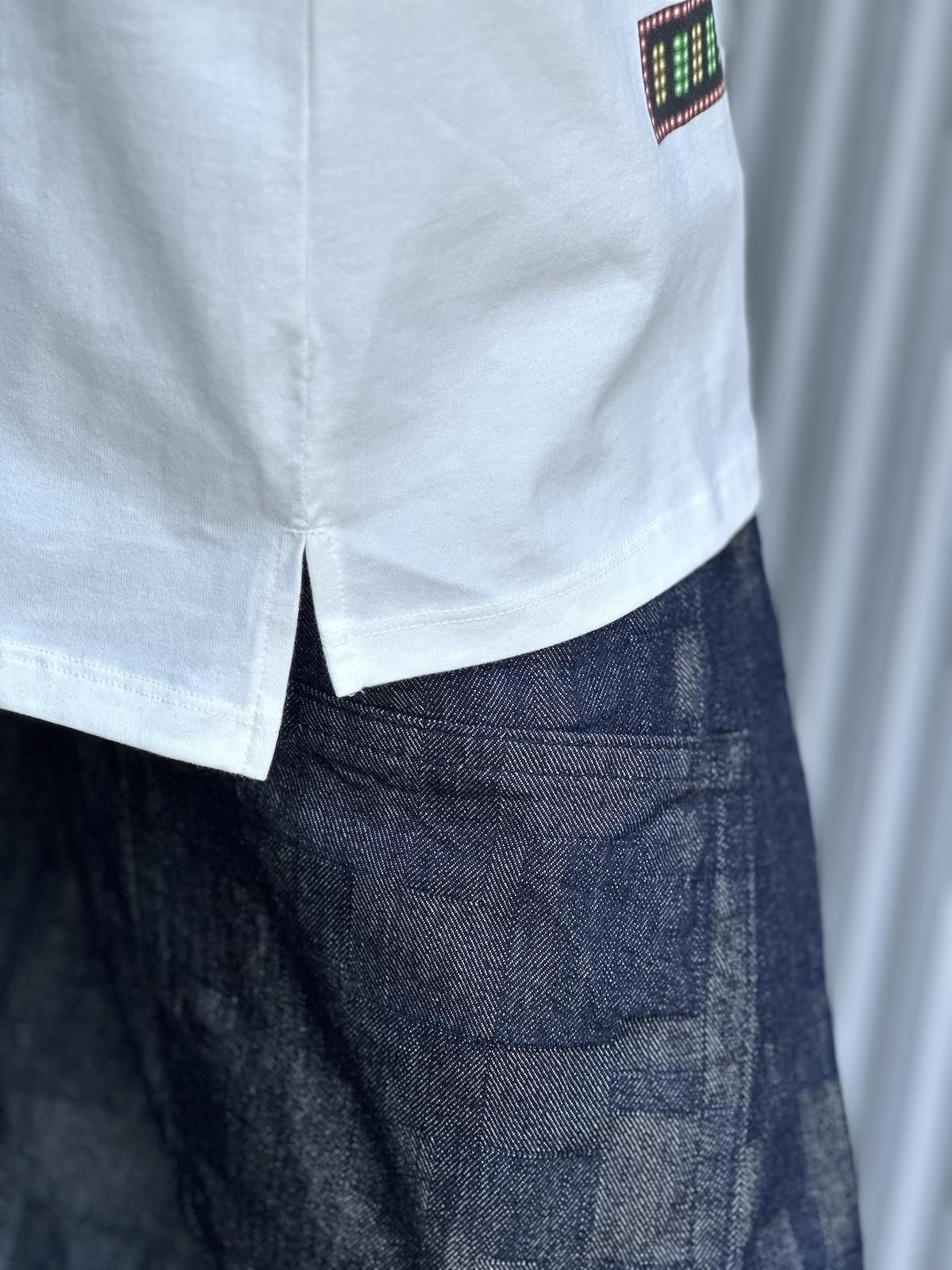 コットン100%。後ろの丈が長く、裾にスリットの入ったボディ。
