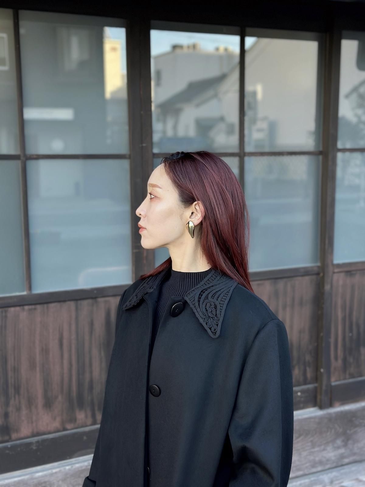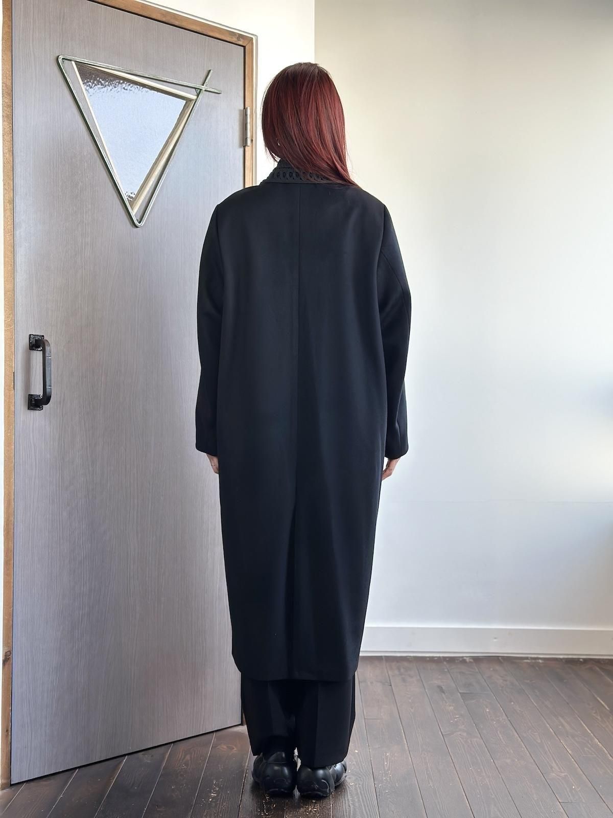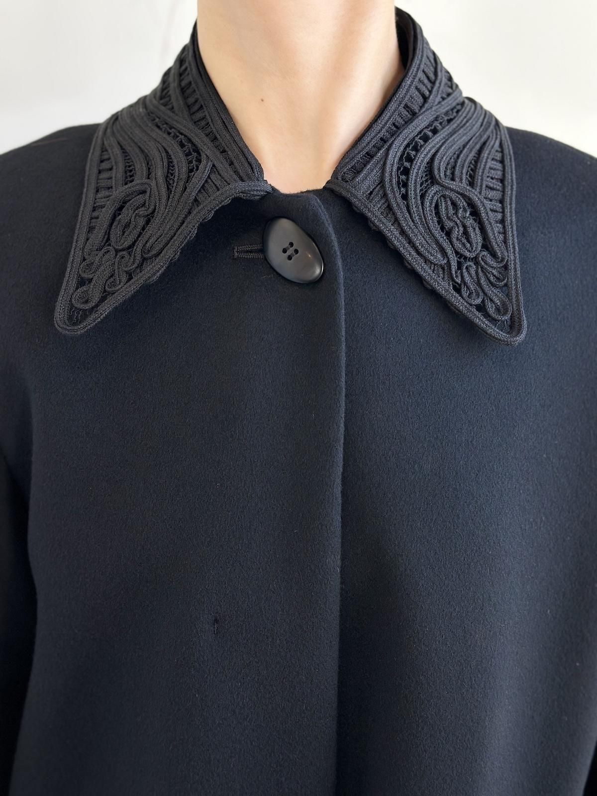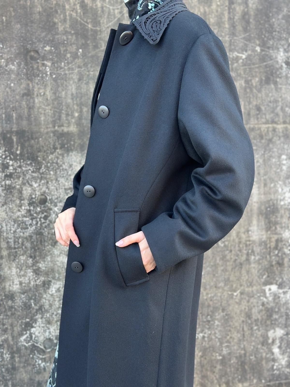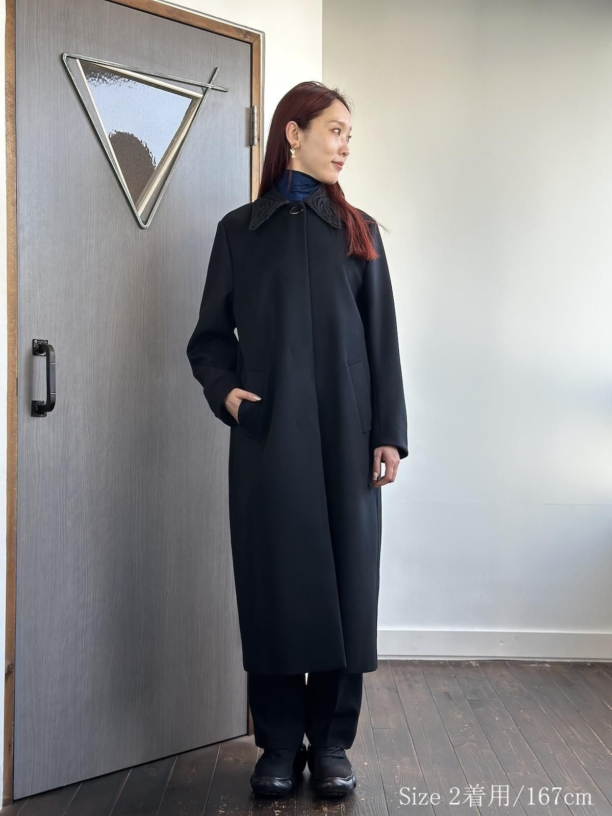 ブランドのシグネチャーであるコード刺繍襟のウールメルトンコートです。