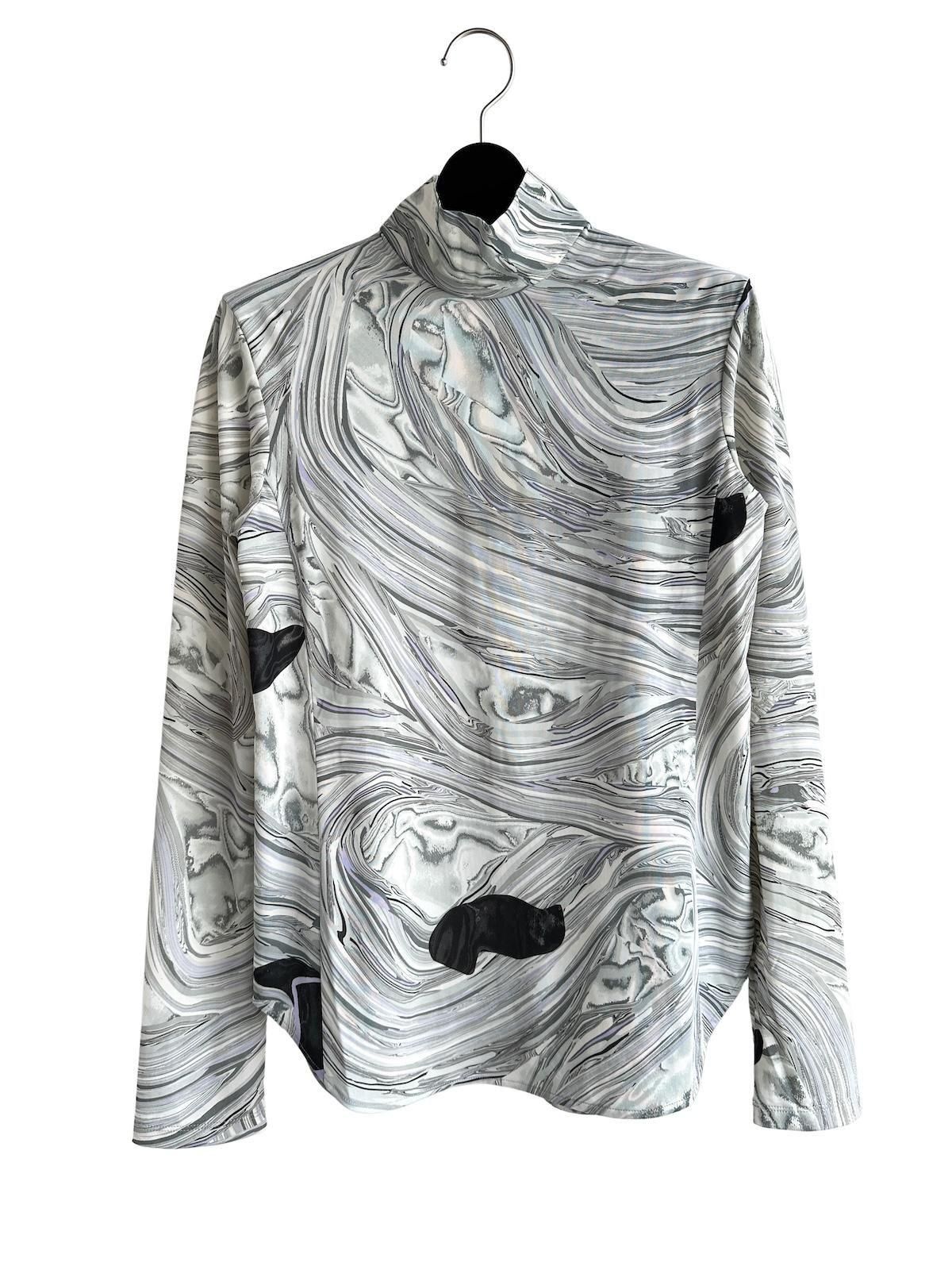 地層石のマーブル模様をプリントしたジャージーハイネックトップです。