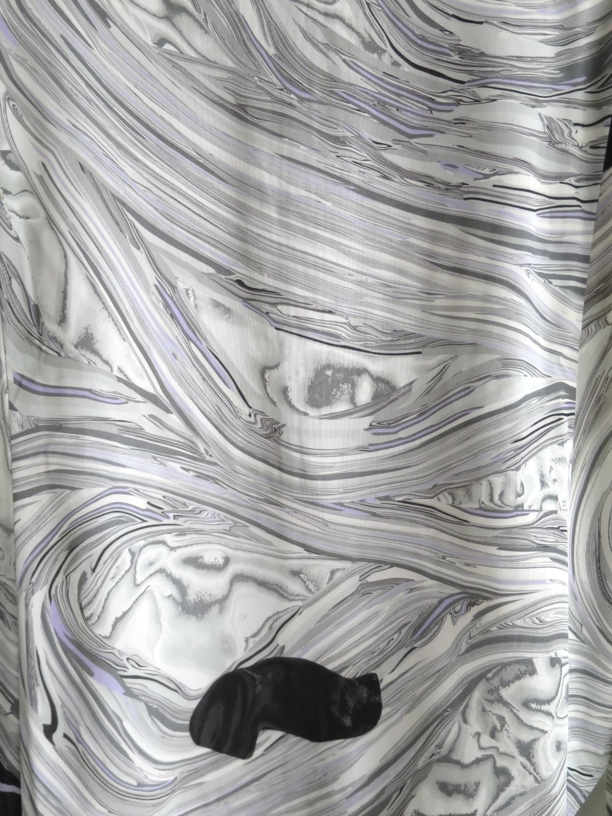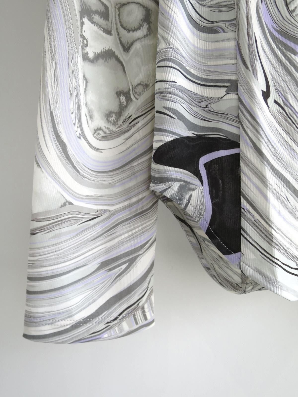 軽やかなリサイクルポリエステルとリサイクルポリウレタンの生地にプリントされたマーブルは、大胆な柄ながら手作業の繊細さが際立つ美しい1着。