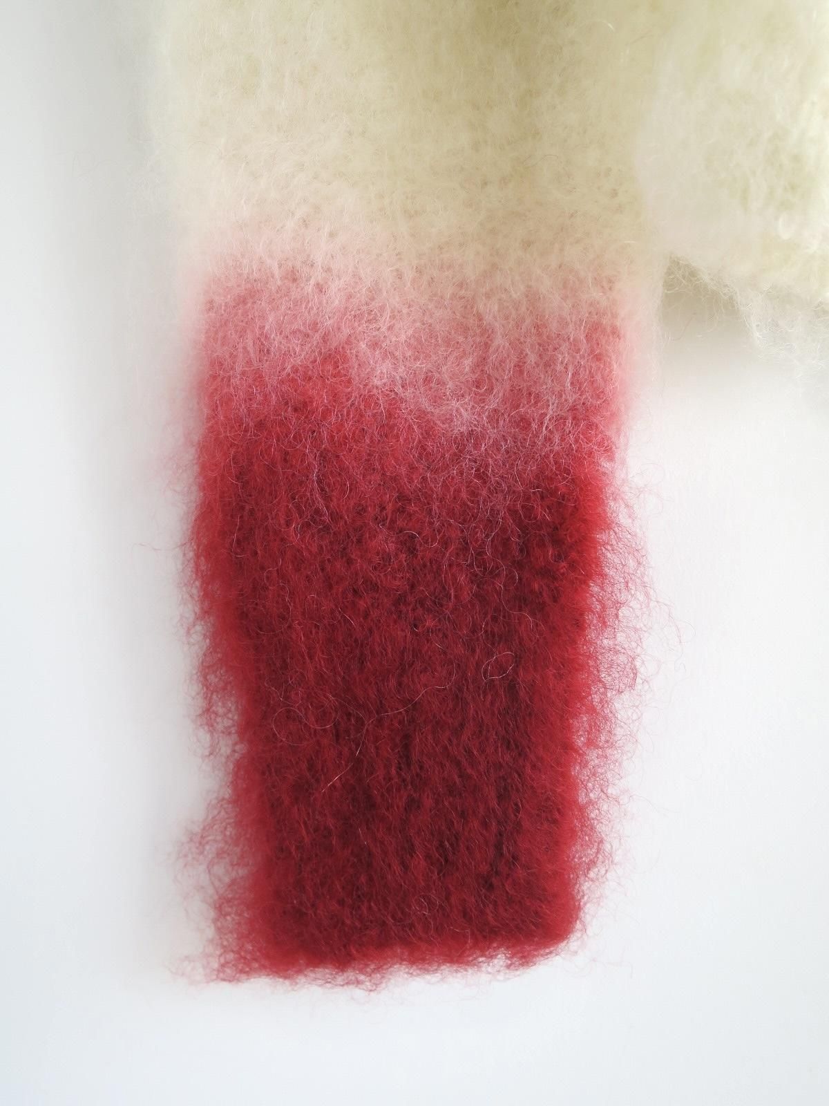 吊るし染めによる鮮やかな染色が美しい起毛ハイネックニットカーディガンです。