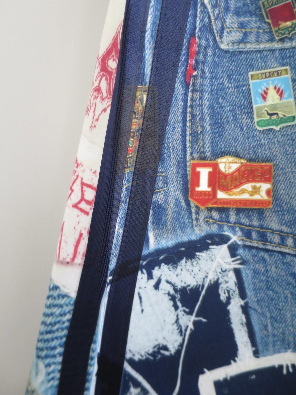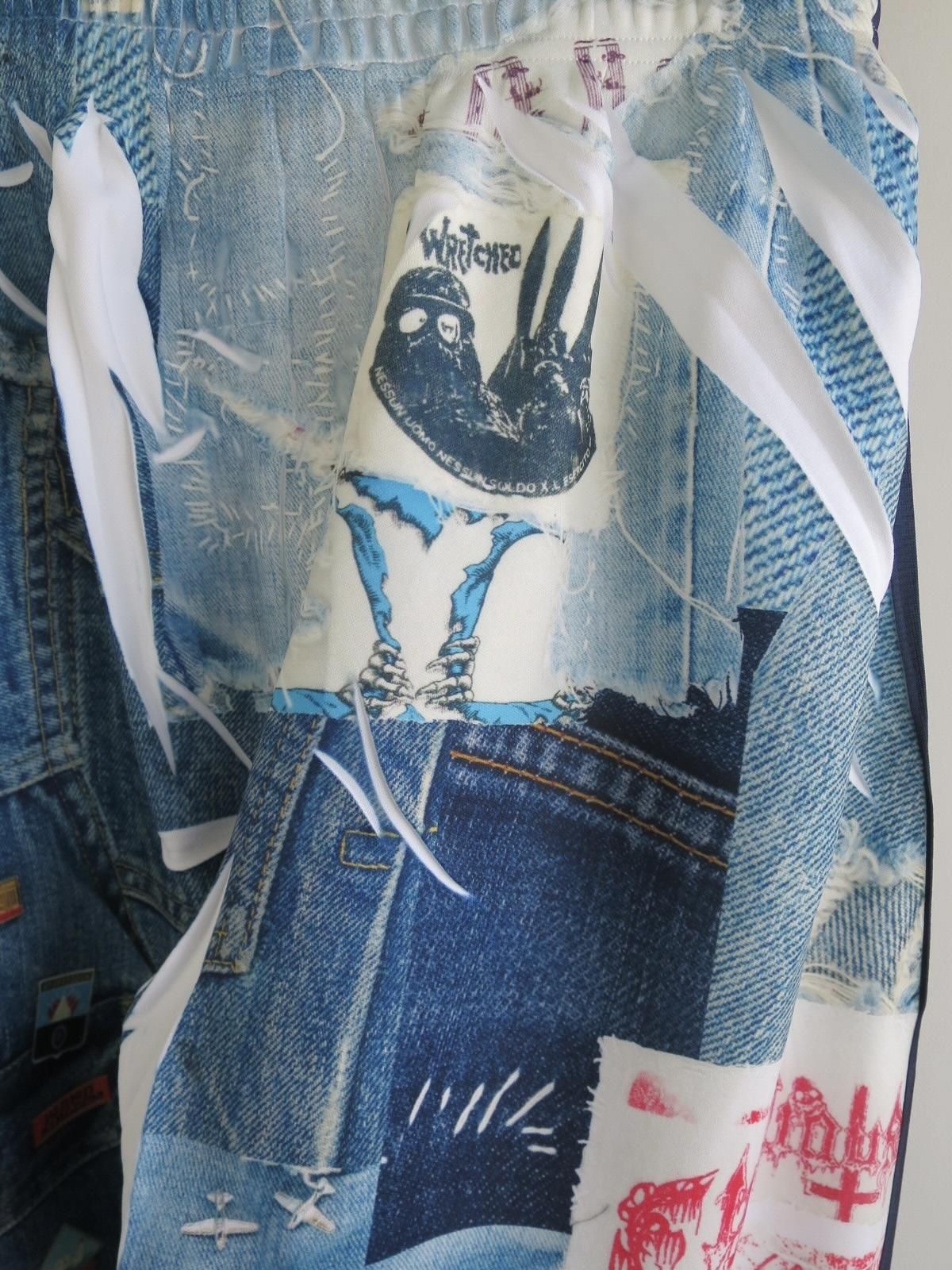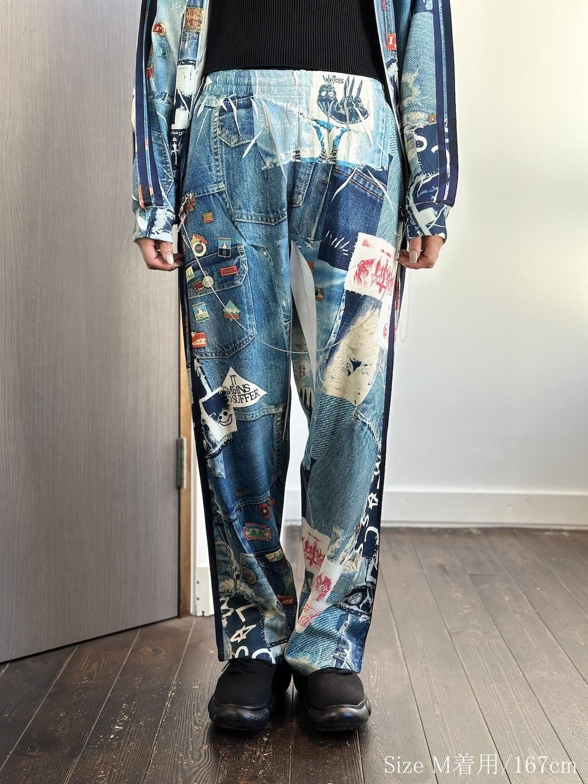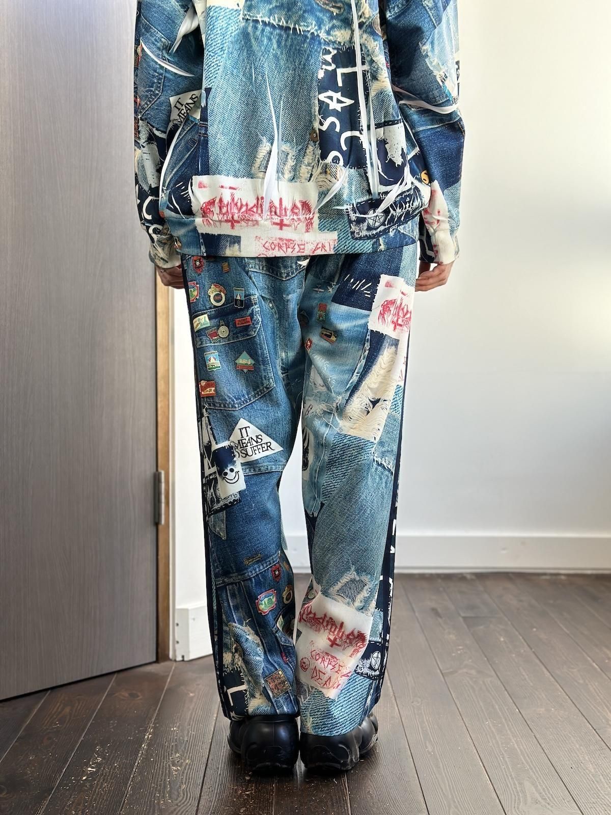 コラボレーションという形で、JUVENILE HALL ROLLCALL(ジュベナイル ホール ロールコール)による、ヴィンテージデニムやワッペン、ピンバッジなどをコラージュしたプリント生地を使用。