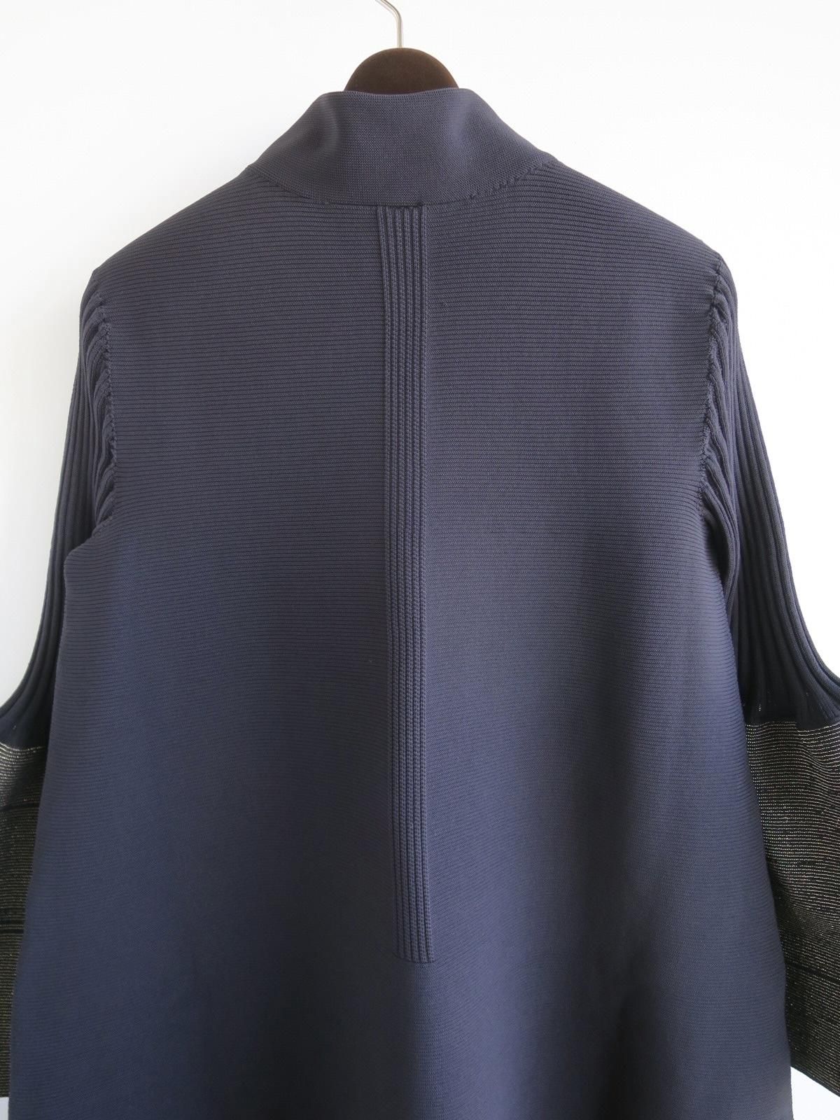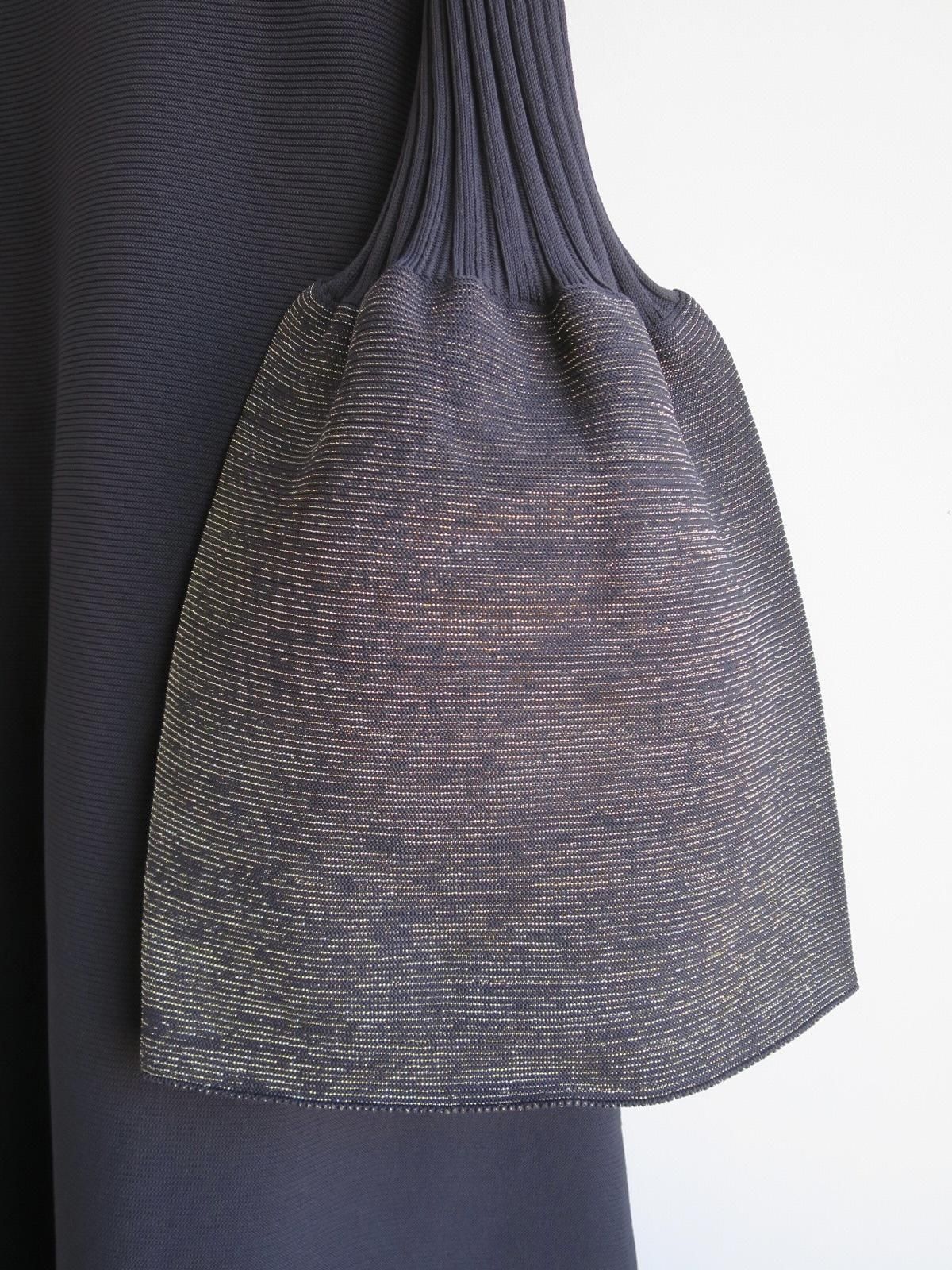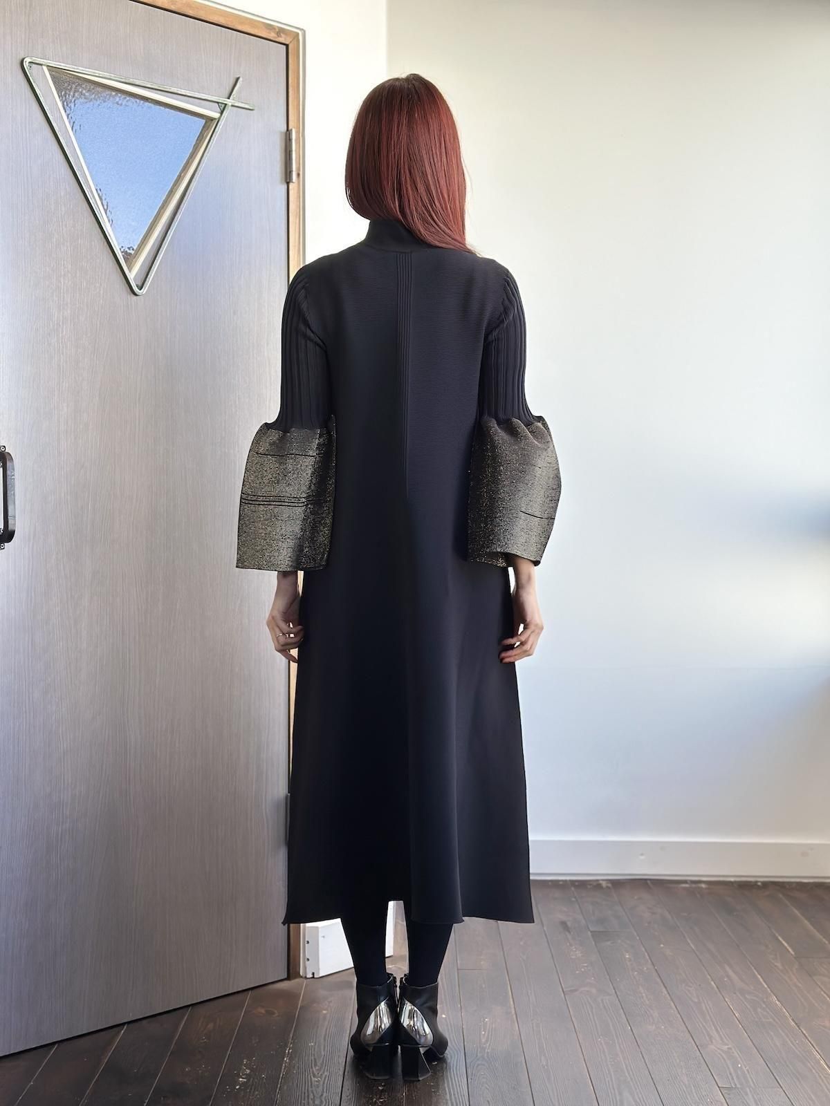 モックネックにコンピュータプログラミングによる立体的なフレアシルエット。